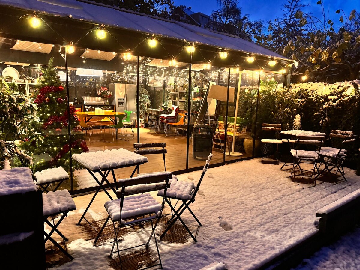 In de betoverende bossen van Oosterbeek ligt dit sfeervolle houten huisje naast de monumentale Orangerie van het voormalige kasteeltje de Hemelse Berg. Geniet van de omringende natuur van historische landgoederen met beken en watervallen en het warme eclectische interieur voor een ontspannen verblijf. Ondanks de serene ligging ligt het centrum van Oosterbeek op slechts 15 minuten wandelen. Ontdek charmante cafés, een espressobar en boetieks, en laat je verleiden door lokale delicatessen.