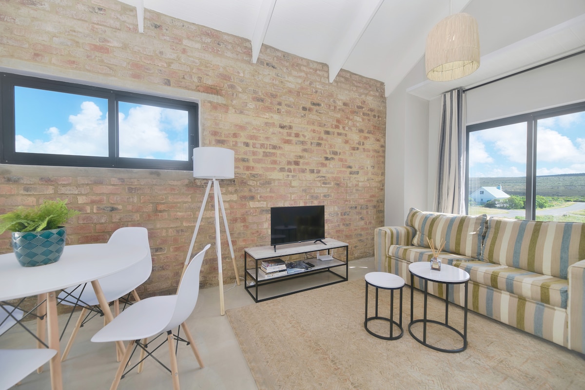 Affacciato sulla spettacolare costa di Capo Agulhas, questo moderno appartamento combina arredi di buon gusto con una posizione imbattibile. Ideale per coppie, viaggiatori solitari o come rifugio per chi lavora da remoto. Questo elegante appartamento con balcone privato porta l'esterno all'interno, con finestre a tutta altezza che incorniciano il mare. Un ambiente sereno con tocchi moderni, a pochi passi dalla spiaggia e a pochi minuti dal punto più meridionale dell'Africa. Una scelta eccezionale per gli ospiti più esigenti in cerca di serenità e bellezze naturali
