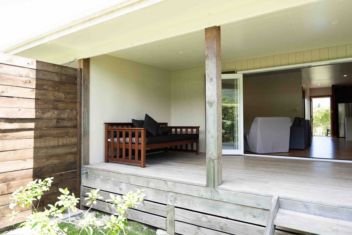 Siediti sul ponte, senti la leggera brezza marina e goditi la vista sulla laguna mentre osservi orche e megattere giocare dove il mare incontra l'orizzonte. Questa casa con due camere da letto dista solo 200 metri dalla spiaggia, su una piattaforma naturale leggermente rialzata al riparo dalle mareggiate, ma comoda per raggiungere la spiaggia, i ristoranti, i trasporti, la spa e altre attrazioni turistiche.