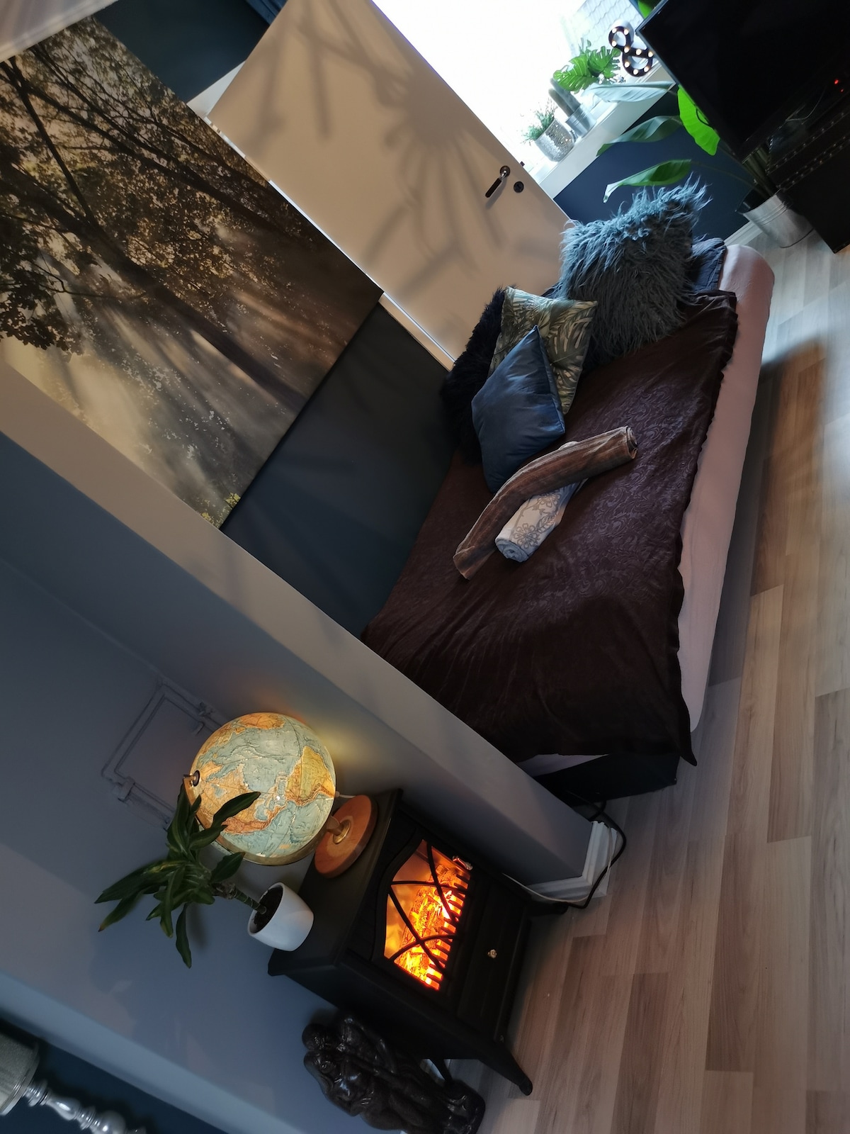 Accogliente casa sull'albero tra gli alberi di Harkmark in affitto La baita è ben isolata e dispone di una stufa a legna pronta per l'uso. La baita è composta da una piccola cucina, un WC, una camera da letto e un soppalco con letto matrimoniale. Divano letto con camera per 2 persone nel soggiorno. L'area esterna contiene un grande tavolo da pranzo, un braciere e un'amaca. Al piano inferiore la baita c'è un'acqua dove è allestita 8 canoe che puoi prendere in prestito gratuitamente, così come un gap con barbecue.
