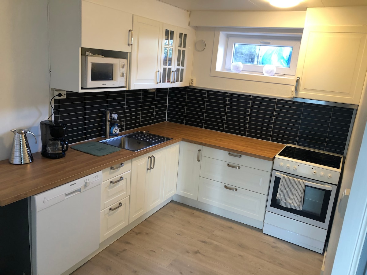 4 camere da letto, 2 bagni e 2 zone giorno, di cui una sala da pranzo. Una camera da letto al secondo piano è una camera familiare con letto matrimoniale e divano letto. Due camere da letto hanno letti a castello per famiglie con letti da 180 cm al piano di sotto e 90 cm al piano di sopra. L'ultima camera da letto ha un letto matrimoniale normale. Sala da pranzo con spazio per 12 persone. Riscaldamento con cavi riscaldanti a pavimento, pompa di calore e stufa a legna. Rete wireless (fibra). AppleTV disponibile.