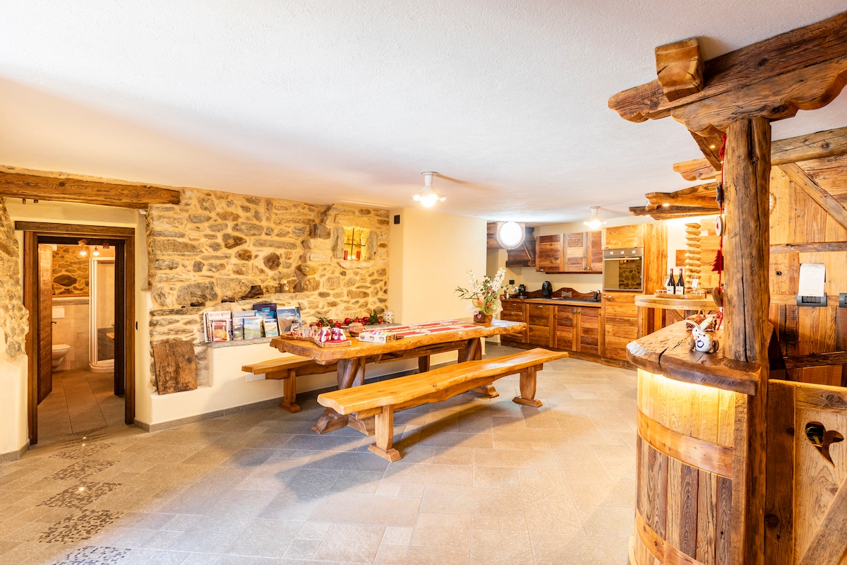 Alpi italiane, Valle d'Aosta, un villaggio a 1600 metri, baciato dal sole e circondato da pascoli e boschi. Un posto del cuore, rinnovato con amore. La vista dalla porta finestra ti regalerà un relax speciale, se sei fra coloro che ricercano pace, quiete e silenzio. Troverete mobili scelti con cura: tanto legno, ma anche colori vivaci e un po' di modernità: con l'obiettivo di coniugare la storia della casa con i più moderni comfort. Da qui si riparte rigenerati (leggere i feedback per credere 🙂