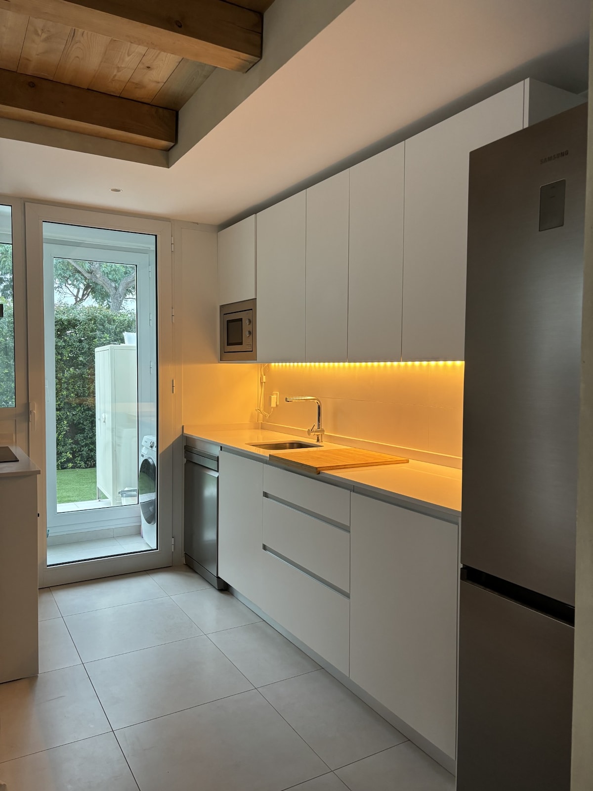 Fantastico duplex con vista sul giardino e sul campo da golf su una delle migliori spiagge dell'Andalusia (Costa Ballena). La casa si sviluppa su due piani: piano terra con ampio soggiorno-pranzo, cucina nuova, servizi igienici e terrazzo giardino. Al piano superiore c'è un bagno completo e due camere da letto. Aria condizionata in tutta la casa. Garage sotterraneo vicino alla porta d'ingresso della casa. La casa si trova in uno sviluppo residenziale con due piscine (estate), giardini e ping-pong.
