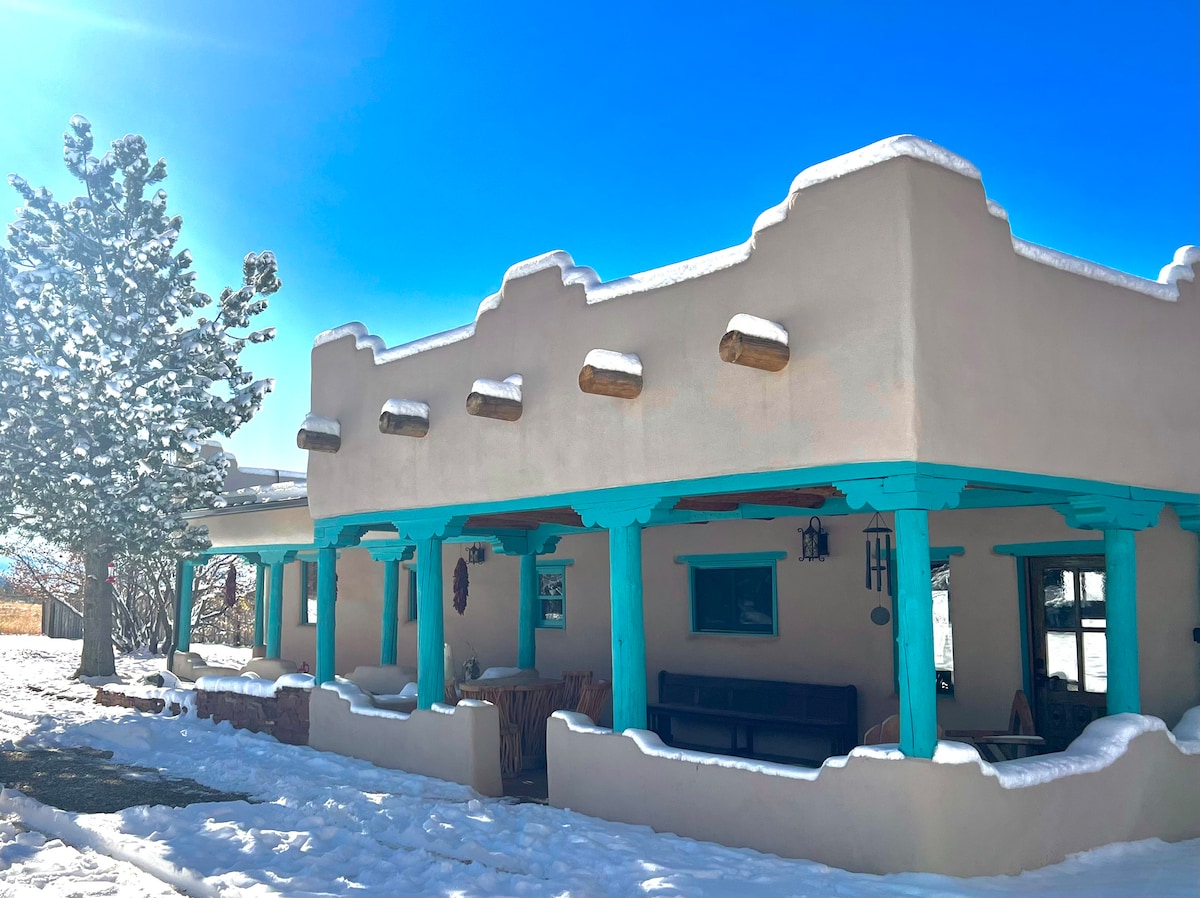 Casa di 100 anni in mattoni di adobe con 2 camere da letto, restaurata con cura per creare un'atmosfera del vecchio Nuovo Messico nella zona di El Salto della contea di Taos. Vicino a numerosi sentieri per escursioni a piedi, in bicicletta, con le ciaspole e alle cascate. Locale perfetto per scrittori - casa accogliente e tranquilla. A dieci minuti dalla famosa valle sciistica di Taos e dalla foresta nazionale di Carson e a QUINDICI MINUTI DI AUTO da Taos. Licenza per lavoro da casa n. HO-32-2020