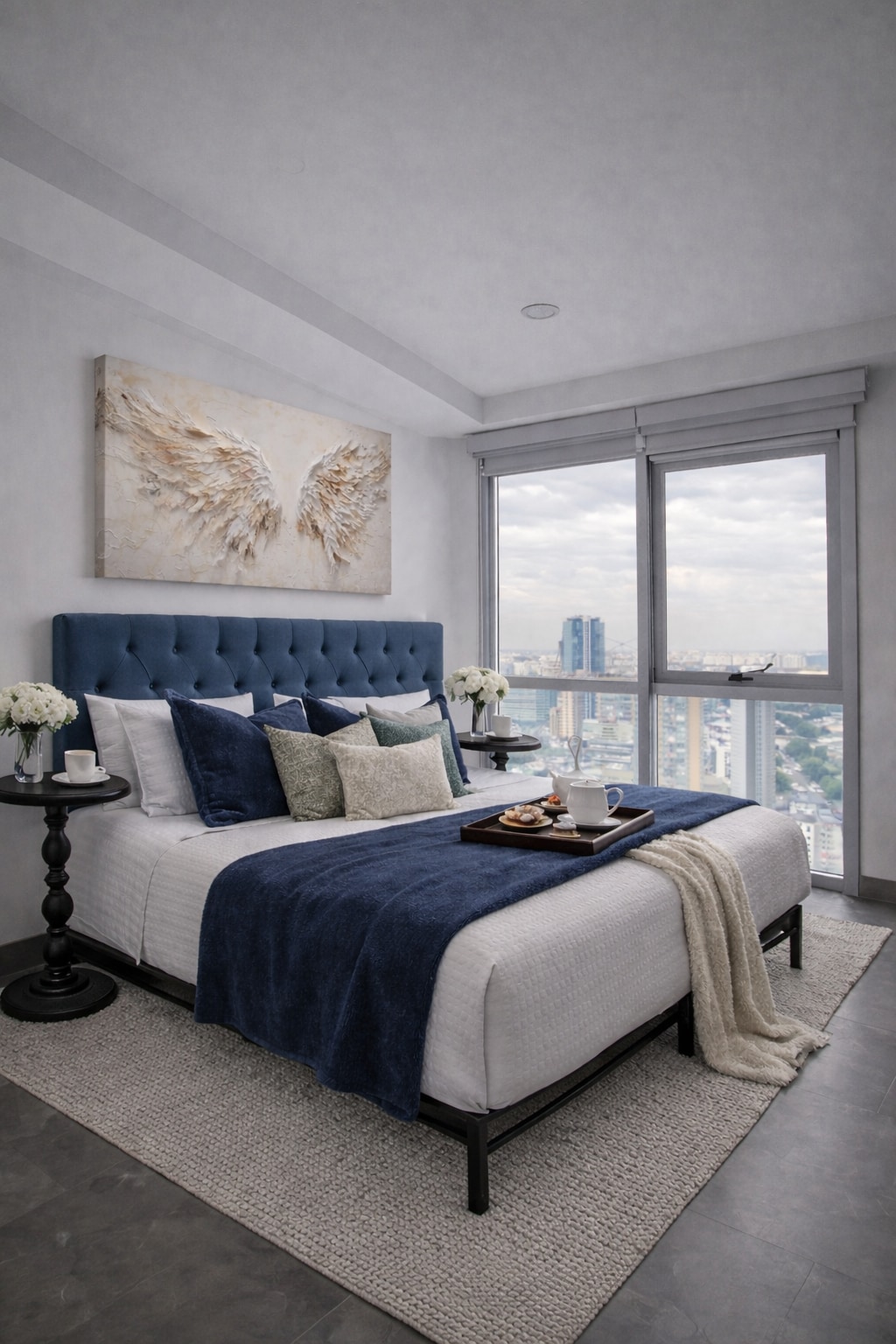Appartamento moderno e accogliente con 2 camere da letto, 2 bagni completi, soggiorno, cucina, sala da pranzo e un posto auto! La camera da letto principale dispone di un letto king-size, un bagno indipendente e una cabina armadio. L'appartamento dispone di 2 TV, wifi e un telefono solo per chiamate locali. L'edificio dispone di giardino pensile, palestra e sicurezza 24 ore su 24, 7 giorni su 7.