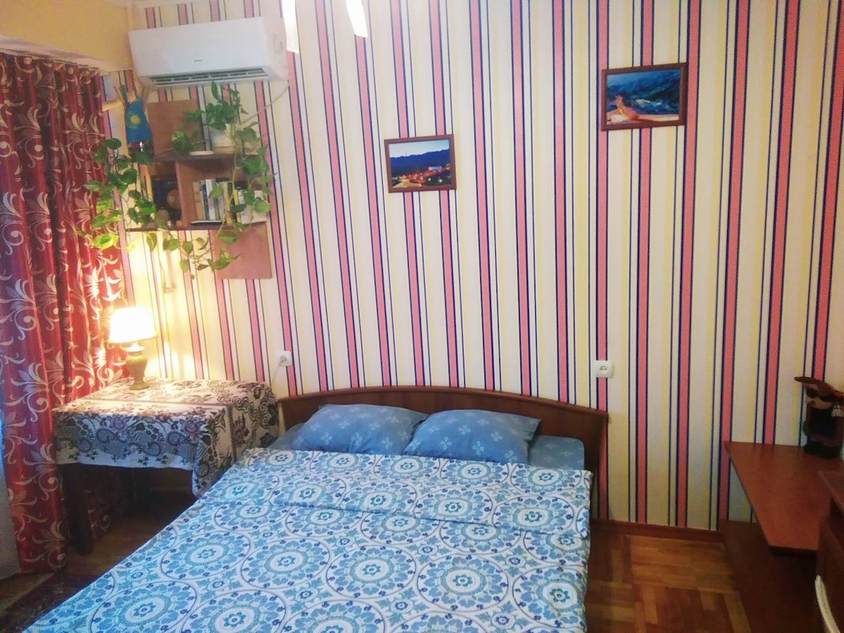 Più di 20 buone recensioni! Lo spazio non è grande ma comodo per 2 persone che sono vicine. È fornito di tutto ciò di cui potresti aver bisogno. Posto pulito, luminoso e tranquillo con atmosfera familiare. Ci vogliono 30-40 minuti per raggiungere l'aeroporto in taxi. La stazione della metropolitana è raggiungibile in 7 minuti a piedi, mentre il mercato del Bazaar Verde dista 10 minuti a piedi.