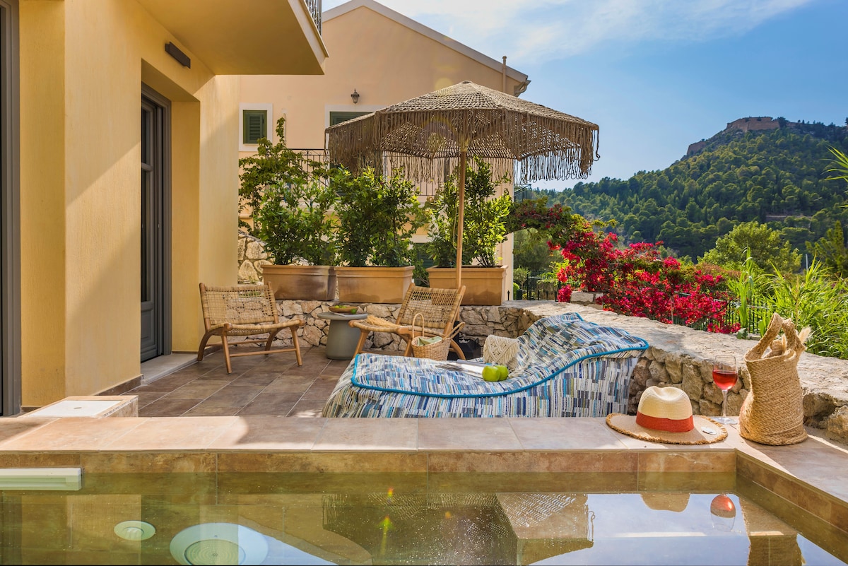 Placed gently, on a hill, in Assos village, Kefalonia, Villa Vivere promises high standard vacations, which offer a sanctuary point of relaxation and a "strategic base" to explore the amazing opportunities of the island as well. Villa Vivere is designed to consist the best way to "absorb" its breathtaking view either relaxing on the terrace or enjoying the sun in the swimming pool. The warm & relaxed way of a simple life and the stunning sceneries of the Mediterranean are our inspiration.