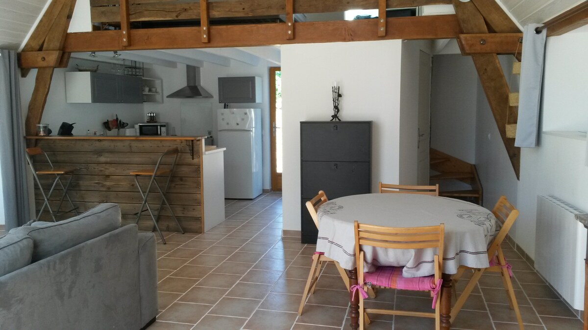 Graziosa casetta indipendente, composta da 1 ampio soggiorno con divano letto, 1 cucina completamente attrezzata con bar, forno, lavastoviglie, frigorifero congelatore, forno a microonde, 1 camera da letto a soppalco aperto sul soggiorno con 1 letto in 160, 1 bagno con doccia e servizi igienici. TV a schermo piatto, lettore dvd, impianto hi fi, giochi da tavolo, libri, cd, dvd, lavatrice. WiFi Terreno alberato. Ambiente tranquillo e bucolico... Bella terrazza con barbecue, salotto in giardino. Letto fatto all'arrivo.
