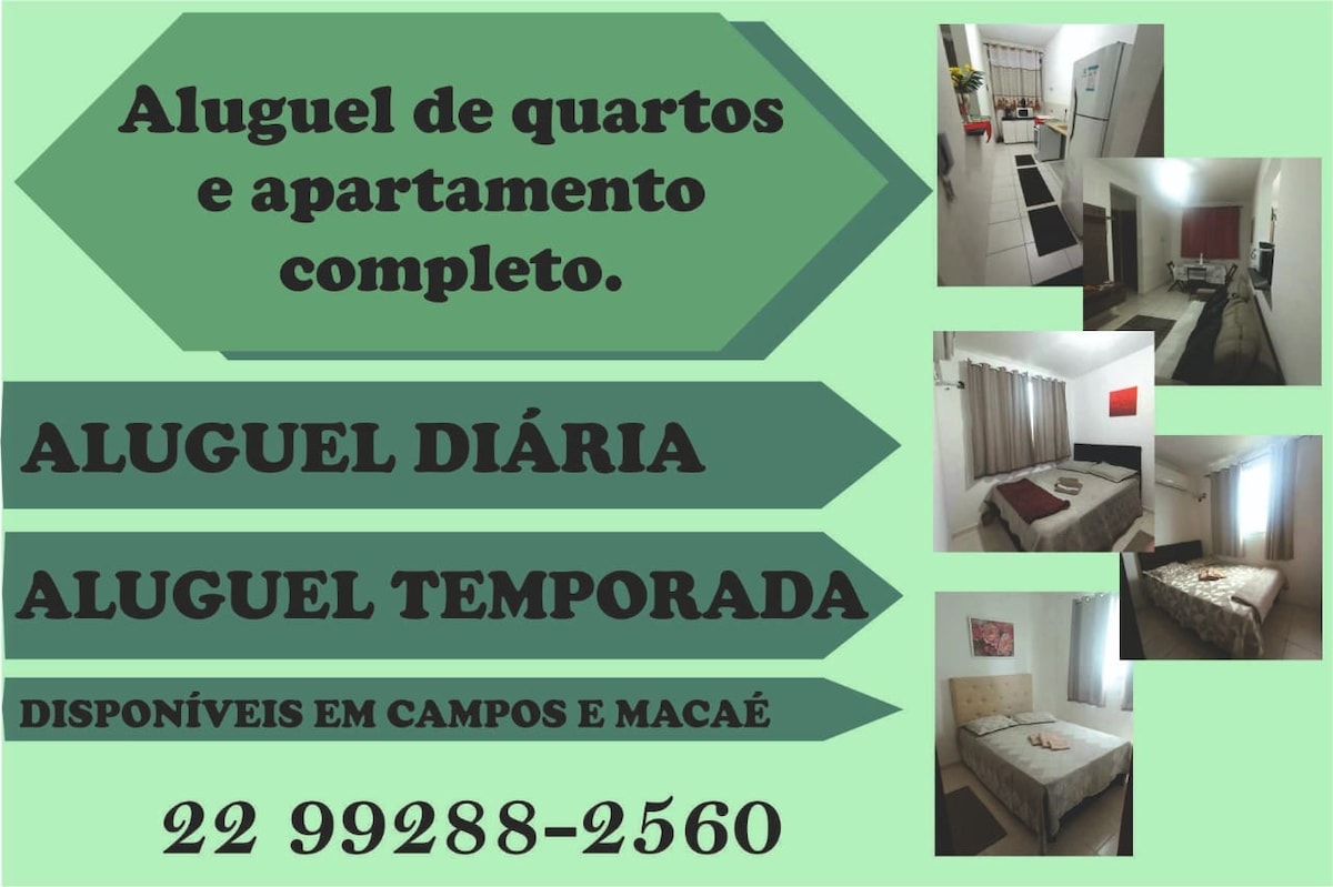 Benvenuti nel nostro accogliente appartamento con due camere da letto, perfetto per famiglie e gruppi che cercano comfort e praticità durante il loro soggiorno a Campos dos Goytacazes! Situato in un tranquillo condominio familiare. Informazioni sull'appartamento: Due camere molto confortevoli. Un bagno in comune. Soggiorno accogliente Cucina completa Servizi: Parcheggio gratuito. Internet ad alta velocità (300 mega). Parco giochi per bambini. Mini Market 24 ore (self-service). .