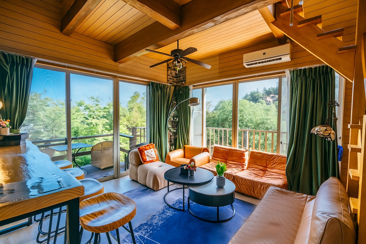 Hill-Top Log-Cabin House: vista sull'oceano/sorgenti termali/