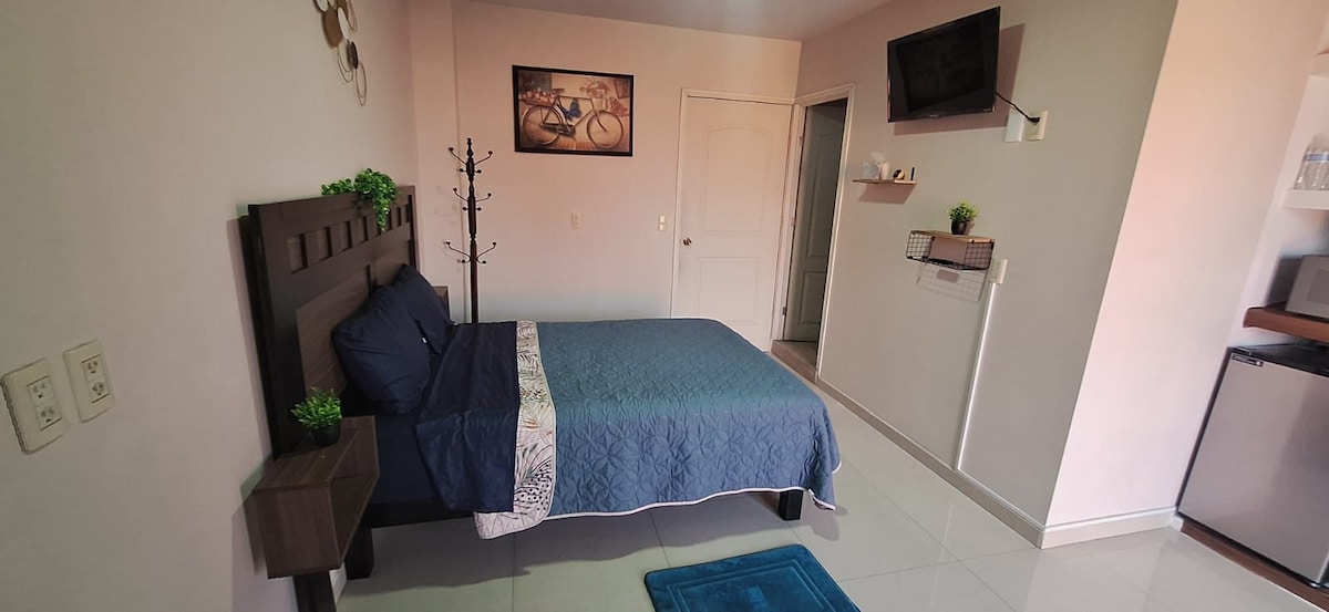 È uno spazio tranquillo, moderno, centrale, nuovo e accogliente per un ottimo soggiorno breve o lungo nella splendida città di Zamora Lo spazio Un monolocale indipendente con lenzuola elettroniche per un maggiore comfort, dotato di tutti i servizi come ARIA CONDIZIONATA, acqua calda, Netflix e internet ad alta velocità Eccezionale A soli 13 minuti dal centro Centro commerciale Sentura a 10 minuti Bodega Aurrera con bancomat BBVA 4 min Oxxo a 4 minuti di distanza