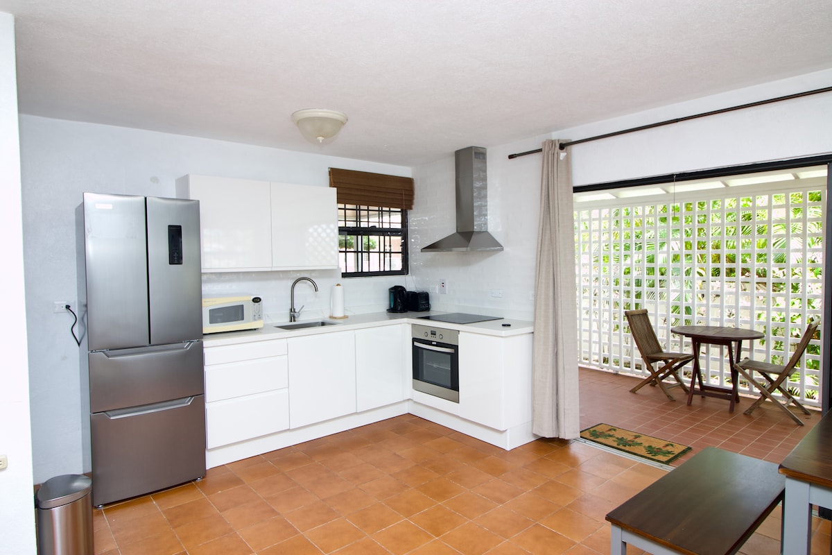 Un Cool Apartment ben arredato con vista sull'oceano, (a 150 metri). La bella spiaggia per il surf di Freights è a 2-3 minuti a piedi, mentre la spiaggia di Miami (Enterprise) è a 10 minuti a piedi. Oistins Town si trova a 5 minuti dalla spiaggia L'unità è al piano superiore con ingresso privato, completamente arredata, con Wi -Fi, TV via cavo, ventilatori sul tetto, una scrivania computerizzata A/C in camera, schermi, 2 letti singoli che possono essere uniti per creare un king size per le coppie.