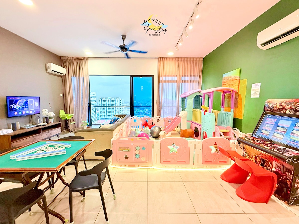 Questo concetto di design è a tema Colorfull e ci impegniamo molto per decorare la parte in cui puoi vedere le nostre piccole cose è divertente e divertente~ Darà alla tua famiglia e ai tuoi amici una giornata speciale e divertente come nostro titolo ~ Colorfull your day :) 3bedroom2bath-free 1 carpark 3 in One view : Seaview / Poolview / City night view 1 camera matrimoniale / 4 letti singoli per la seconda camera / 2 materassi pieghevoli Downstair is BrewHouse u can enjoy drink and food easy A 10 minuti da JonkerStreet A 10 minuti da Klebang Coconut & Beach