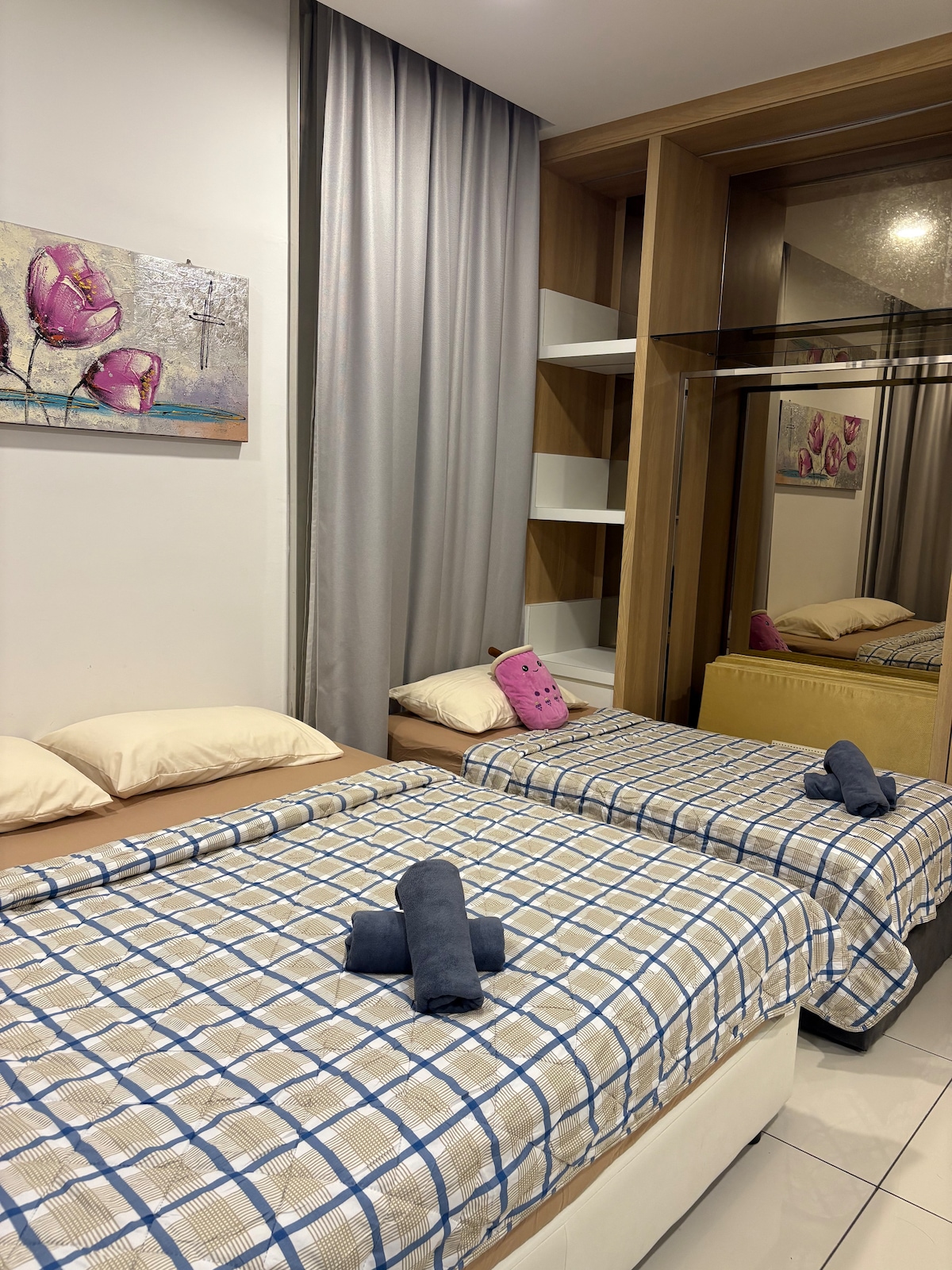 Atlantis Residence Sky City Resort & Management Centro città con imbattibile vista notturna sulla città Monolocale per 5 persone per una famiglia, la piscina al 7° piano si gode la fresca brezza marina di notte Vicino alle attrazioni turistiche e ai ristoranti.Adatto a viaggiatori d'affari e di piacere Lo spazio Questo monolocale per 5 persone ha un balcone con vista notturna, puoi sognare la vista notturna Camera accogliente con soggiorno, cucina e bagno La nostra unità è completamente arredata e completamente arredata Ampio soggiorno e balcone con vista notturna sulla città Con TV-box Aria Condizionata Divani comodi Servizi come bagnoschiuma 2 in 1 + shampoo e asciugamani. Monolocale 1 comodo letto matrimoniale, cuscini e asciugamani A/C Armadio con appendiabiti per tende oscuranti Asciugacapelli, ferro e asse da stiro con doccia Servizi come gel doccia 2 in 1 + shampoo Cucina Frigorifero Bollitore, tazze, piatti e ciotole Cucina a induzione Pentola, forchetta e cucchiaio Lavatrice Forno a microonde Accesso degli ospiti (è necessario un costume da bagno) Piscina per bambini Area giochi per bambini Tutte le strutture sono soggette alla disponibilità dell'edificio e alla SOP La gente gode della comodità di tutto a due passi.
