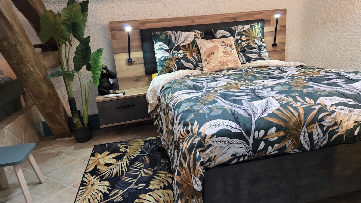 Grazioso monolocale su un unico livello, luminoso e indipendente di 25m2. Tranquillo e con vista sul giardino. Alloggio nuovo, ben isolato Grande terrazza con vista sul giardino Offriamo la colazione e il tavolo degli ospiti su prenotazione che vengono serviti nel vostro alloggio o sulla vostra terrazza . Parcheggio protetto da un cancello elettrico. Ideale per moto, biciclette , auto d'epoca , professionisti , rimorchio , barca, jetski...