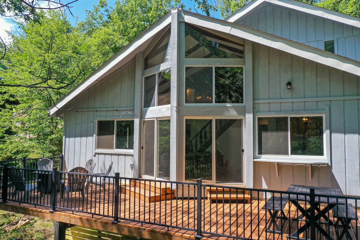 La nostra casa appena ristrutturata è il luogo perfetto per 1-2 famiglie, che può ospitare comodamente 10 persone. Situato in cima alla montagna, sarai a due passi dai fantastici servizi di Massanutten tutto l'anno (piscine, piste, campi da golf, golf cart, minigolf, ecc.). Disponiamo di televisori in 3 delle nostre 4 camere e di una grande TV nel soggiorno. Ampio tavolo da pranzo con 8 posti a sedere. Due grandi ponti all'esterno. Griglia a gas, braciere, sala da pranzo all'aperto e molto altro ancora!