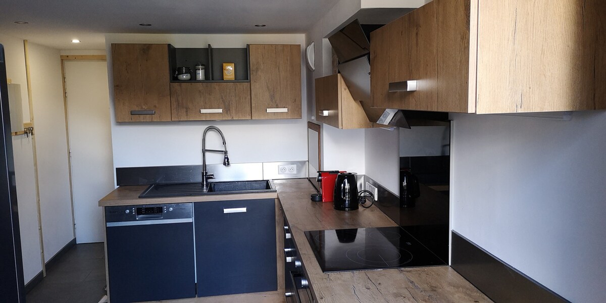 Appartamento 2 persone di 30 m2 ristrutturato in una casa storica a Névache. Caldo e luminoso, completamente indipendente e tranquillo con terrazza. - 1 cucina attrezzata (frigorifero, forno a microonde, mini forno, lavastoviglie, piano cottura a induzione, cappa) e una zona salotto con 1 divano e 1 TV connessa. -1 camera con un letto 140 x 190 cm e due poltrone. - Bagno con doccia, lavabo, asciugamani e servizi igienici, lavatrice. -Terrazza esposta a sud-est. - Riscaldamento centralizzato. - Wi-Fi. - Deposito sci.
