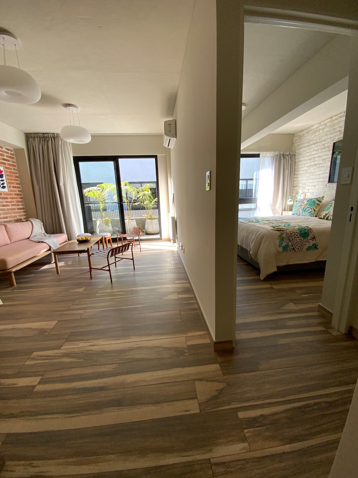 Questo appartamento di 55 m² unisce stile e funzionalità, con arredi eclettici e design moderno. Comprende un letto matrimoniale, un divano letto (divano o letto aggiuntivo), un tavolo da pranzo di design, una cucina con bar, un bagno completo con vasca, una scrivania per l'ufficio e un balcone. Situato a La Editorial, una ex tipografia ristrutturata premiata per il suo design. Situato in posizione strategica vicino a Puerto Madero, La Boca e Downtown, con ottimo accesso a trasporti, bar e locali di tango. Wi-Fi 600 Mb, reception 24 ore su 24, piscina sul tetto, area barbecue e lavanderia.