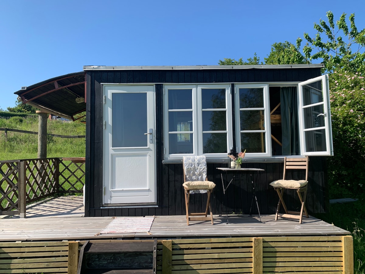 Tiny house di 24 m2 nel cortile del proprietario. Cabina più piccola ma molto accogliente e ben attrezzata. Cucina con frigo e freezer. Piano cottura e piccolo forno, pentole, padelle e tutto il necessario per i piatti. Caffettiera. WC e vasca, nonché doccia esterna con acqua calda. Camera da letto con 2 letti singoli che possono essere uniti. Soggiorno e cucina in un unico ambiente. TV e Wi-Fi. Patio con mobili da giardino e barbecue. La baita è parzialmente schermata dalla casa del proprietario.
