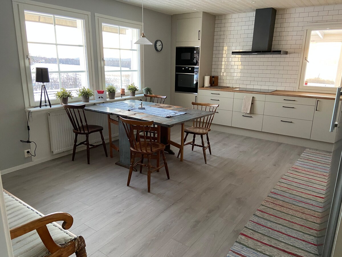 Sogni un soggiorno confortevole, spazioso e panoramico lungo il fiume Dalälven? Allora questo è il posto dei tuoi sogni. Una villa ariosa e accogliente dove creare ricordi, cucinando sull'isola della cucina o nuotando la sera dal tuo molo. Natura, cultura e attività a portata di mano. Goditi la pesca, il birdwatching, il paddle, il golf o lo sci di giorno e le serate pigre davanti al camino la sera. Per le prenotazioni da settembre in poi, contattaci.