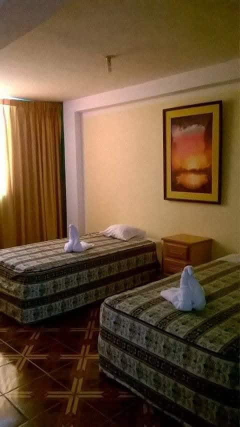 A soli 4 isolati di distanza, la camera include la colazione, il servizio navetta dall'aeroporto e tutti i servizi di un hotel di qualità nella città di Ayacucho. Abbiamo internet ad alta velocità, una TV a grande schermo e bevande calde sempre a disposizione. C'è un supermercato a un solo isolato di distanza. Siamo un hotel che accetta animali domestici e puoi ordinare tutti i prodotti di cui hai bisogno per la consegna.