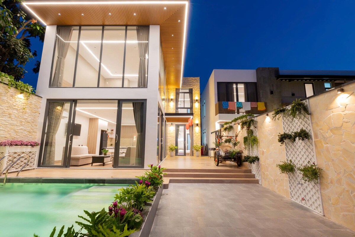 Questa è 𝐕𝐄𝐑𝐘 𝐍𝐄𝐖 (2022) Villa con 4 camere matrimoniali, piscina privata sul fiume e vista sul mare al Sanctuary Ho Tram Beach Resort - La villa dispone di 4 camere da letto con letto matrimoniale (1,8 m x 2 m) e bagno privato - La cucina è completamente attrezzata, la griglia per il barbecue è disponibile nella villa. Nella villa sono consentite attività di cucina e barbecue - Il resort ospita un ristorante - Alloggio per 9 adulti + 4 bambini di età inferiore a 12 anni. Verrà applicato un supplemento per le persone in più: 1 milione di VND/adulto in più senza letto extra e 500.000 VND/bambino di età inferiore a 12 anni