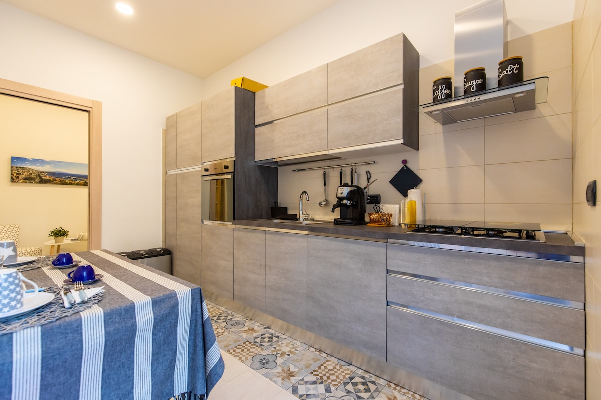 Apartment perfect for a couple or for a small family. Elegant and fully equipped, with a huge rooftop with a panoramic view. It’s located in front of the sea and the Castle. Only 5 minutes walking to Piazza del Plebiscito and the dock, furthermore it is close to bus stops, markets, restaurants and the metro station. Many years of experience hosting people from all over of the world.