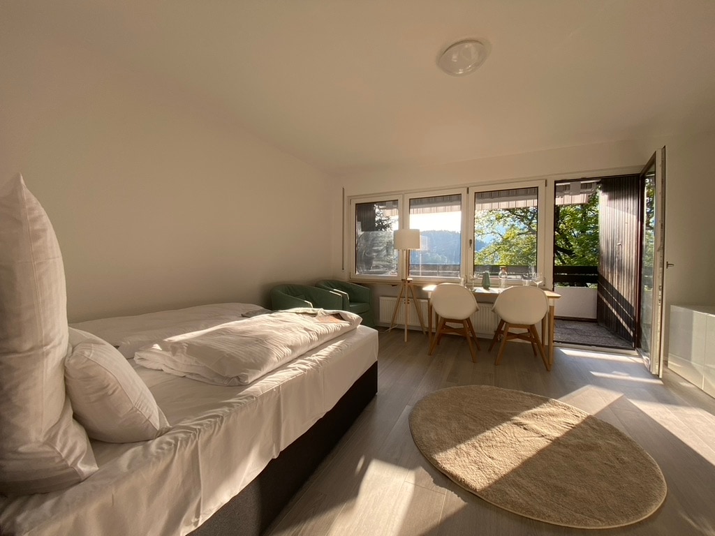 Wohltuende Ruhe, die Aussicht auf das Tal und den Wald, eine hochwertige Einrichtung und ein großer Balkon – Genuss pur. Wanderwege vor der Haustüre und tolle Restaurants sowie die Therme in Bad Teinach - alles da für einen erholsamen und genussvollen Aufenthalt. Das komplett ausgestattete 1-Zimmer-Appartement ist der perfekte Ort um die Seele baumeln zu lassen, um in der umgebenden Natur aktiv zu sein oder auch Städte wie Nagold, Wildberg oder Calw zu erkunden.