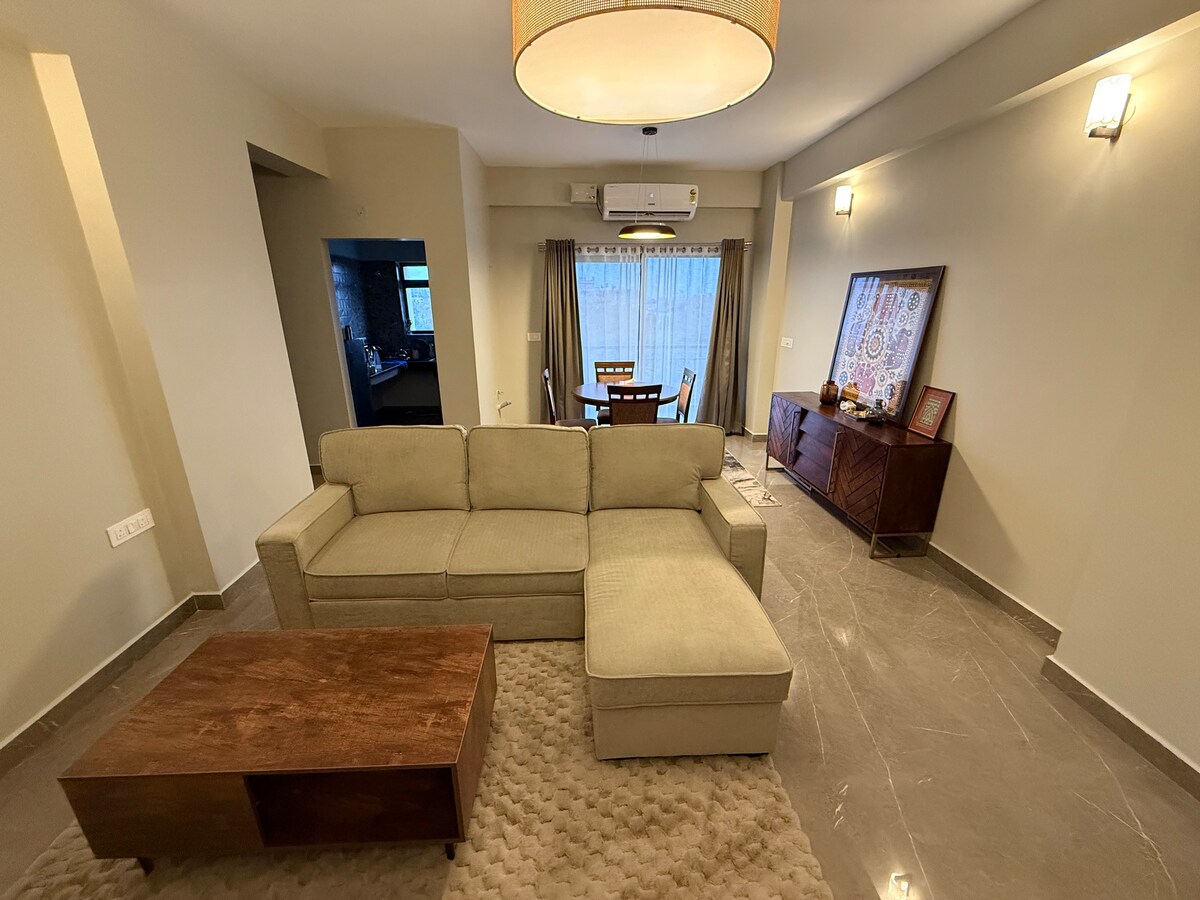 Benvenuti nel nostro accogliente appartamento di 3 camere da letto progettato con cura, perfetto per famiglie, gruppi o lavoratori a distanza! Ogni camera da letto è dotata di un comodo letto matrimoniale, ventilatore a soffitto, armadio con armadietto e la sua atmosfera unica Camera 1: sala intrattenimento con TV Camera 2: l'unica camera con aria condizionata, spazio di lavoro e libri di narrativa Stanza 3: spazio ricreativo per rilassarsi o fare stretching Goditi una cucina funzionale, WiFi ad alta velocità, un'area comune con servizi igienici indiani e occidentali, bagno separato con geyser e parcheggio gratuito!