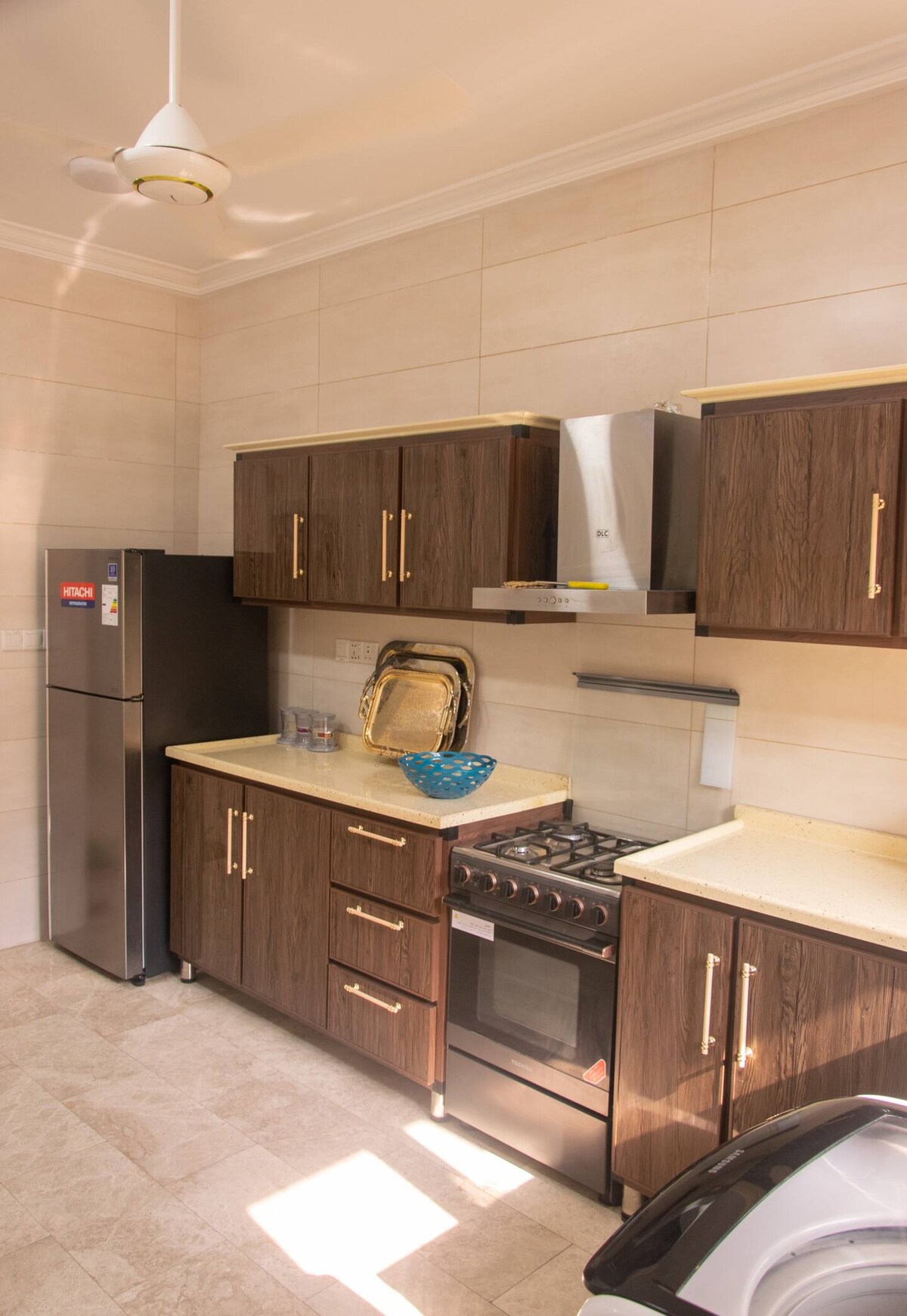 Forget your worries in this spacious and serene space consisting of 1 double bed and 2 single beds. inside the compound a super market ,laundry , bakery . Full air conditioning and 24/7 electricity