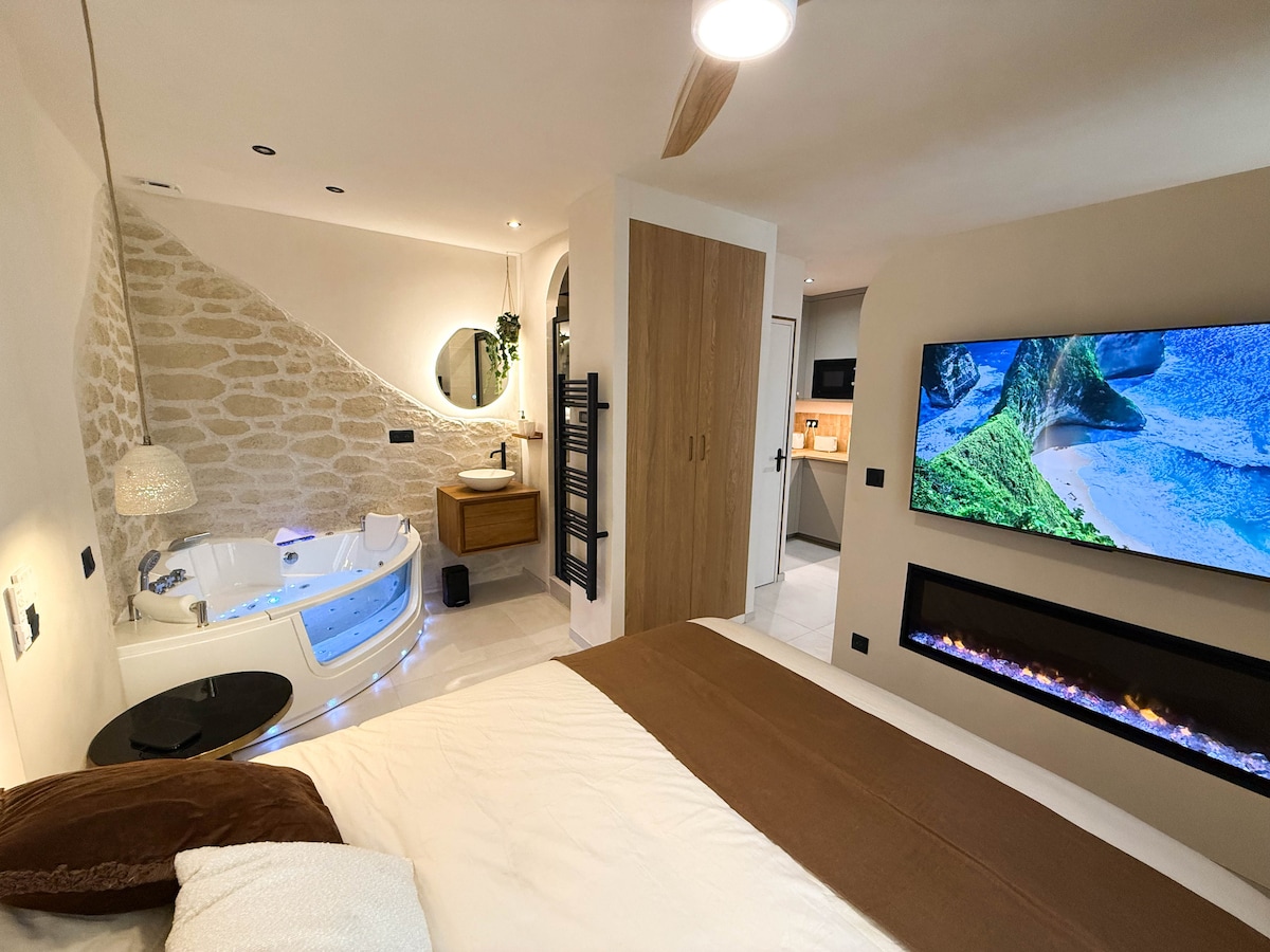 Concedetevi una parentesi esotica alle porte di Parigi. Questo bozzolo in stile balinese di 25 m² ben organizzato con jacuzzi e doccia a pioggia, vi immerge in un'atmosfera zen e che vi farà sentire come se foste in un altro paese. Perfetto per una fuga parigina con un'esperienza atipica in più, questo luogo vi offrirà un vero momento di relax. Camino decorativo, vasca idromassaggio con musica integrata, spazio accogliente… tutto è pensato per farvi viaggiare. Situato a Vanves, in una zona tranquilla, su un cortile interno.