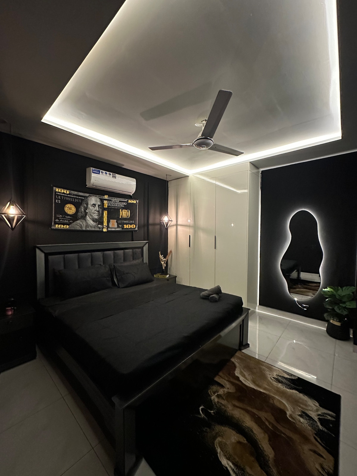 - Appartamento con una camera da letto all'ultimo piano - Personale in loco 24 ore su 24 per soddisfare le tue esigenze - Edificio orientato alla famiglia in cui non accettiamo feste o coppie non sposate - posto auto interrato dedicato - Situato vicino alla città di Johar, offre un facile accesso ai servizi - carta d'identità o passaporto richiesti - Caffetteria che consegna cibo direttamente in camera - A circa 25 minuti dall'aeroporto per comodità di viaggio - Escursione perfetta