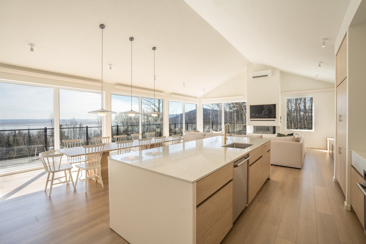 Situato nella prestigiosa tenuta della Signoria, questo chalet è unico! Grazie alle sue ampie finestre, offre una delle viste più belle della zona sul fiume, sulla baia e sulle montagne di Charlevoix. Il Bergen combina comfort moderno e arredamento minimalista per offrirvi momenti di relax assoluto. La residenza è dotata di una spa aperta tutto l'anno da cui si può ammirare il paesaggio e fare il pieno di energia in completa intimità!