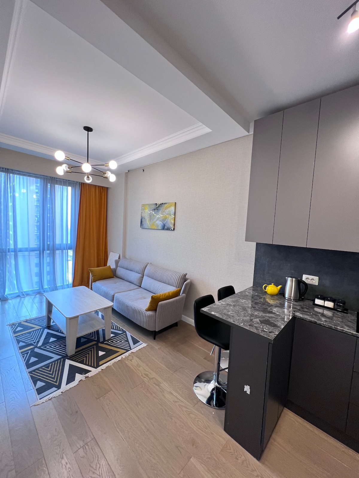Benvenuti nel mio elegante appartamento al 9° piano con ascensore, situato nella parte più centrale e prestigiosa di Baku. A soli 2 minuti dal famoso Baku City Circuit, è circondato da monumenti, hotel di lusso, centri commerciali e dal lungomare. Dalle finestre panoramiche e dall'ampio balcone potrai godere di una vista mozzafiato sul Mar Caspio, sullo skyline della città e sul circuito di Formula 1, come se la gara si svolgesse proprio sotto i tuoi occhi.