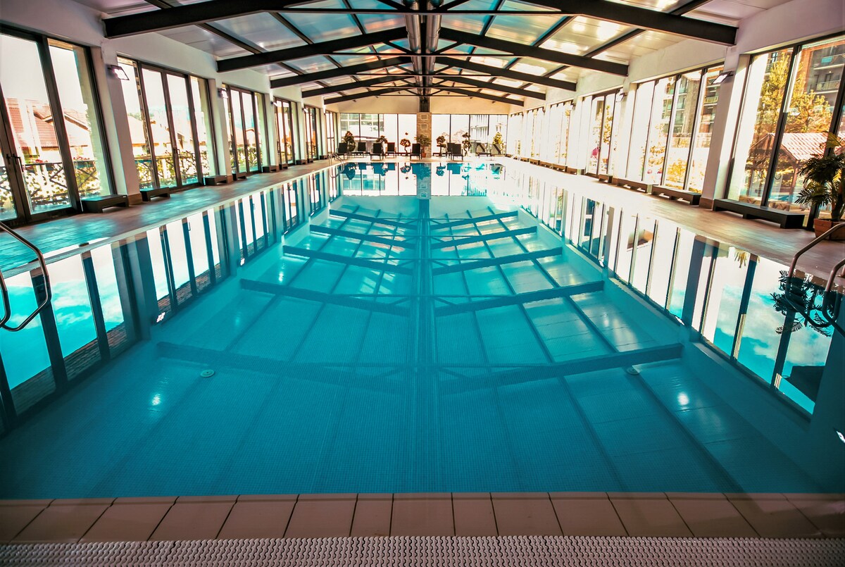 Il complesso Crystal si trova in una posizione pittoresca ed è ideale per lo sci e lo snowboard, il complesso dispone di una propria funivia, un centro spa, una piscina e un ristorante. A pochi passi ci sono molti diversi tipi di divertimento. Nelle vicinanze si trovano un negozio di alimentari, una farmacia, un parco giochi per bambini e, naturalmente, una foresta indescrivibilmente bella, con sentieri ben attrezzati. La camera ha tutto il necessario per un soggiorno confortevole, con una vista mozzafiato dal balcone.