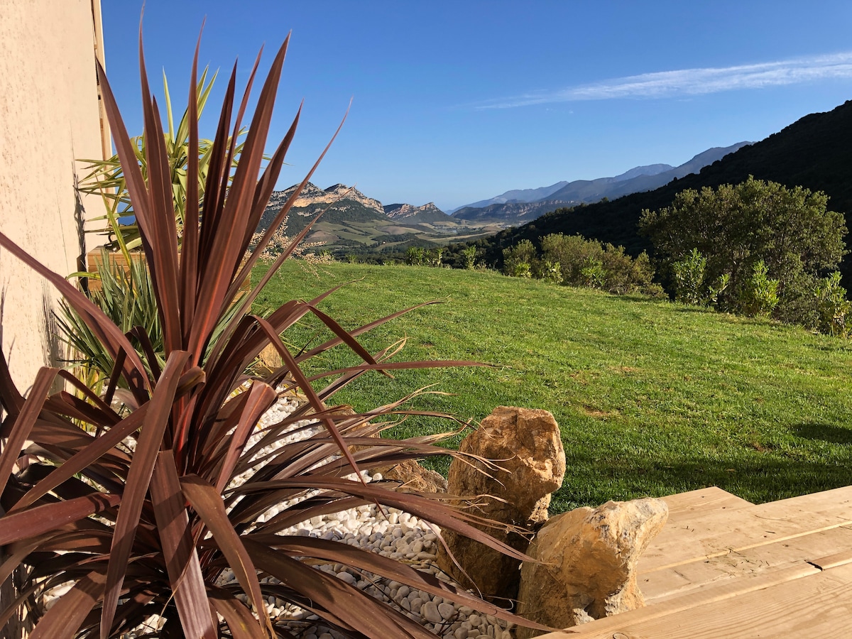 Graziosa mini villa monolocale funzionale in stile bergerie corse in dependance con parcheggio privato gratuito, aria condizionata reversibile, si trova a 10 minuti da Calvi e dalle sue spiagge, all'ingresso del villaggio di Calenzana ai piedi della montagna corsa e alla partenza di diversi sentieri escursionistici. Godetevi la sua tranquillità lontano dalla folla e dal rumore notturno vicino al giardino con tre galline, niente gallo, mobili da giardino e barbecue. Possibilità di prima colazione da pagare in loco 7€
