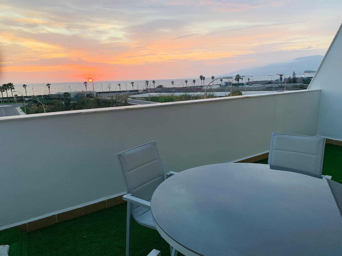 Svegliati con il blu del mare in questo luminoso appartamento con 2 camere da letto, terrazza privata e piscina comune. Rilassati al sole, fai colazione con vista sul mare o goditi un bellissimo tramonto sulla tua terrazza. A soli 5 minuti dalla spiaggia Terrazza con vista sull'oceano - WiFi - Piscina condivisa. A 10 minuti da Almeria 2 ore e 15 minuti dall'aeroporto di Malaga 40 min Cabo de Gata
