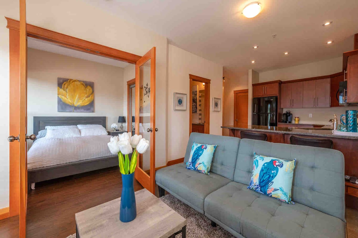 Quando Palm Springs incontra una tranquilla foresta lussureggiante e appartata: benvenuti nella nostra oasi scandinava. Questa suite privata in stile hotel ha un ingresso indipendente e un patio, ed è il luogo perfetto per godersi la bellezza e la serenità della natura, pur essendo a soli 12 minuti da Osoyoos e a 30 minuti dalla stazione sciistica di Mt. Baldie. Fai un salto indietro nel tempo con l'arredamento di metà secolo, ma goditi il lusso di una doccia a pioggia, di uno spazio di lavoro e di una mini cucina per preparare qualsiasi pasto.