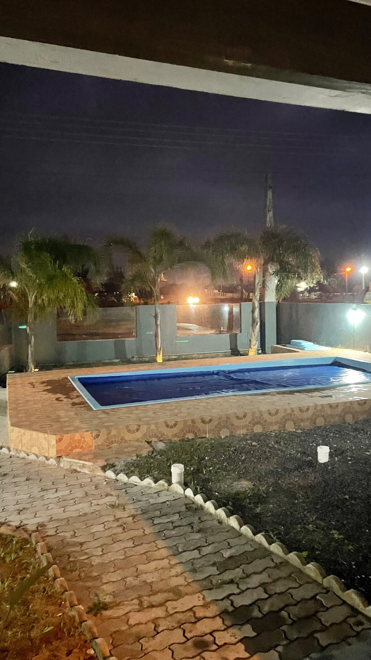 Ample - 01 camera matrimoniale con pay TV ed aria condizionata; -01 camera matrimoniale senza tv e senza aria condizionata; -01 camera singola con pay TV; - Chiosco con aria condizionata e TV a pagamento; -03 materassi singoli in garage; chiosco con piano cottura/forno elettrico/microonde/birra / frigorifero e rubinetto con acqua calda; - Piscina con riscaldamento