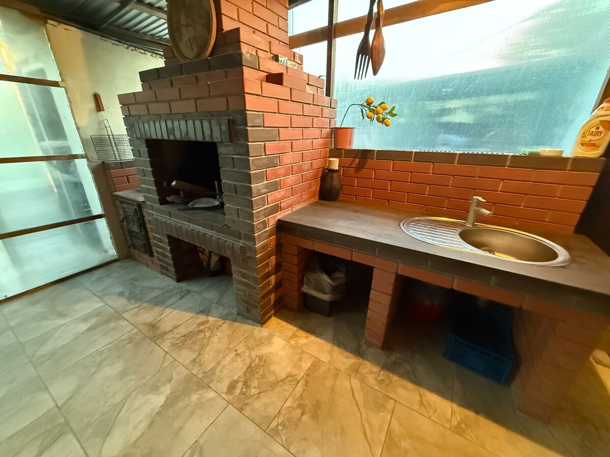 Уютная вилла, где есть камин и барбекю на природе.