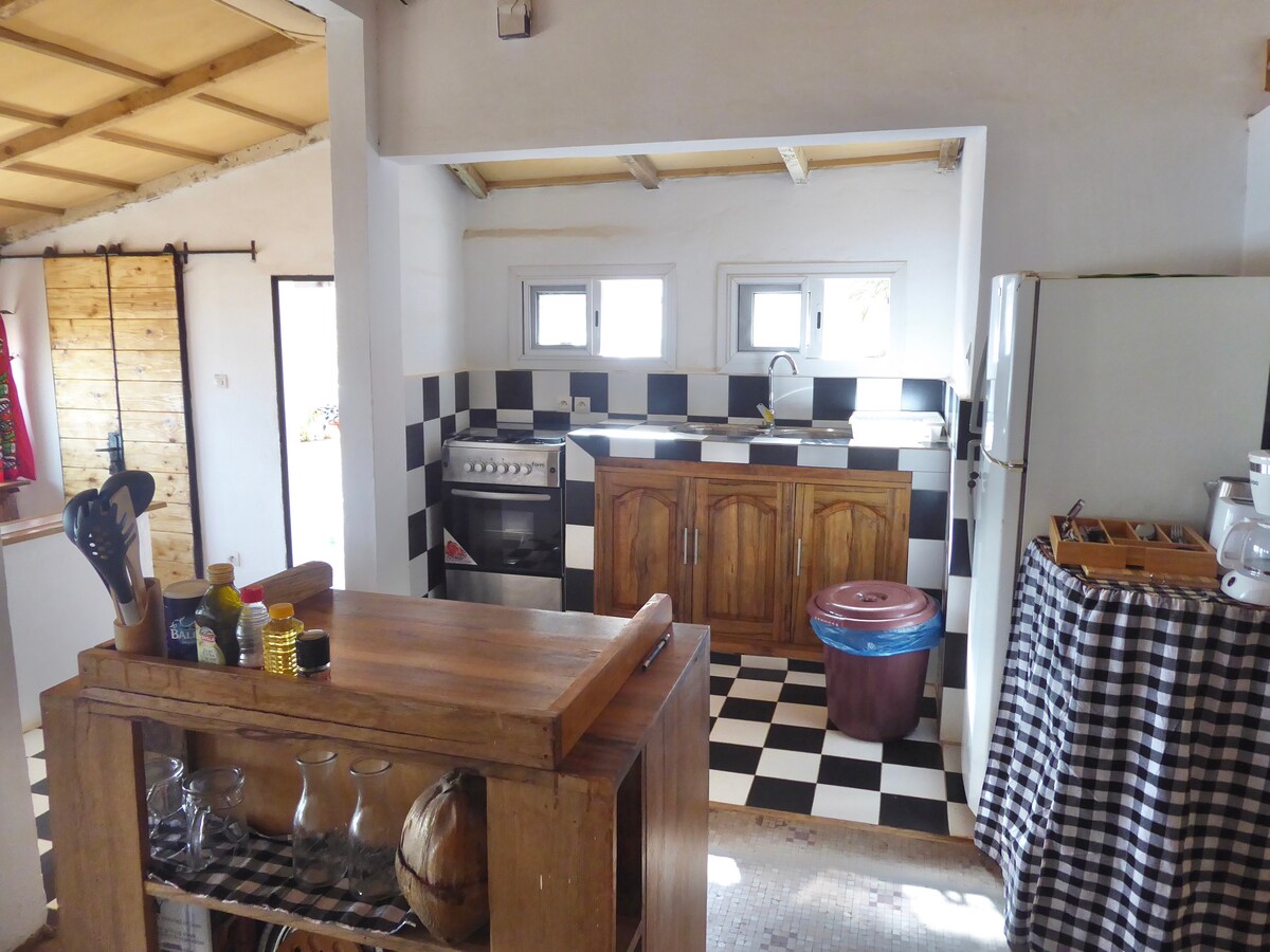 Ex capannone degli anni '60, quando i residenti di Dakar venivano a trascorrere i fine settimana a Popenguine. Raro testimone inalterato di questo periodo, è stato ristrutturato rispettandone l'autenticità. Sulla spiaggia, dista anche 2 minuti a piedi dal centro. Il terreno viene organizzato a poco a poco in base agli affitti. Gli amanti del mare che apprezzano i piaceri semplici e la vita del villaggio ne saranno sedotti. Prima di prenotare, ti invitiamo a LEGGERE ATTENTAMENTE le informazioni e le regole ;-)