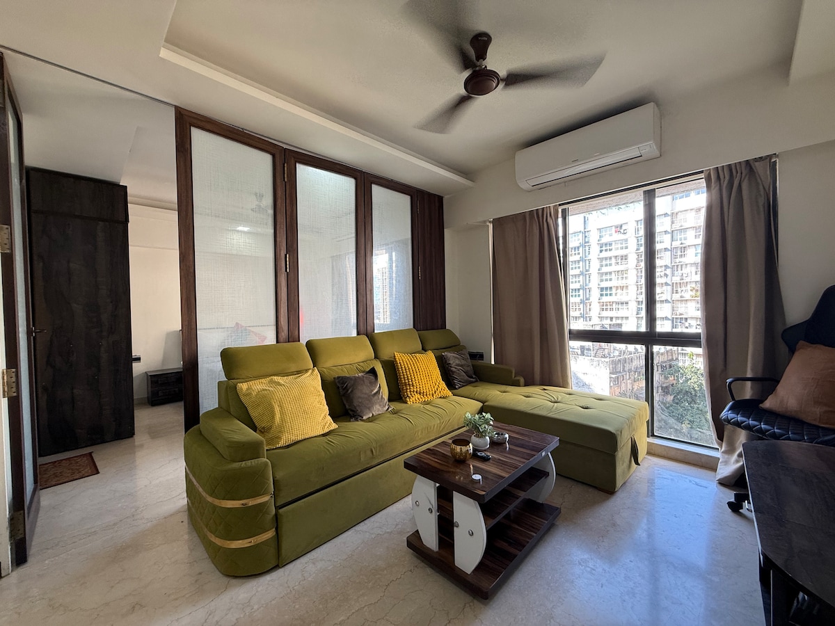 Benvenuto al tuo moderno rifugio di appartamenti con 1 camera da letto vicino a BKC! Con il suo design minimalista, l'ampio spazio di lavoro, le opzioni di intrattenimento e i servizi essenziali, soddisfa le esigenze dei viaggiatori d'affari e di piacere! Caratteristiche: Lavori ★ di grandi dimensioni ★ WiFi ad alta velocità gratuito ★ Smart TV ★ Tata Sky con tutti i canali HD ★ Sound Bar ★ Forno a microonde/frigo ★ Friggitrice ad aria ★ Purificatore d'aria ★ Depuratore d'acqua Prenota subito e scopri la combinazione perfetta di modernità e comfort!