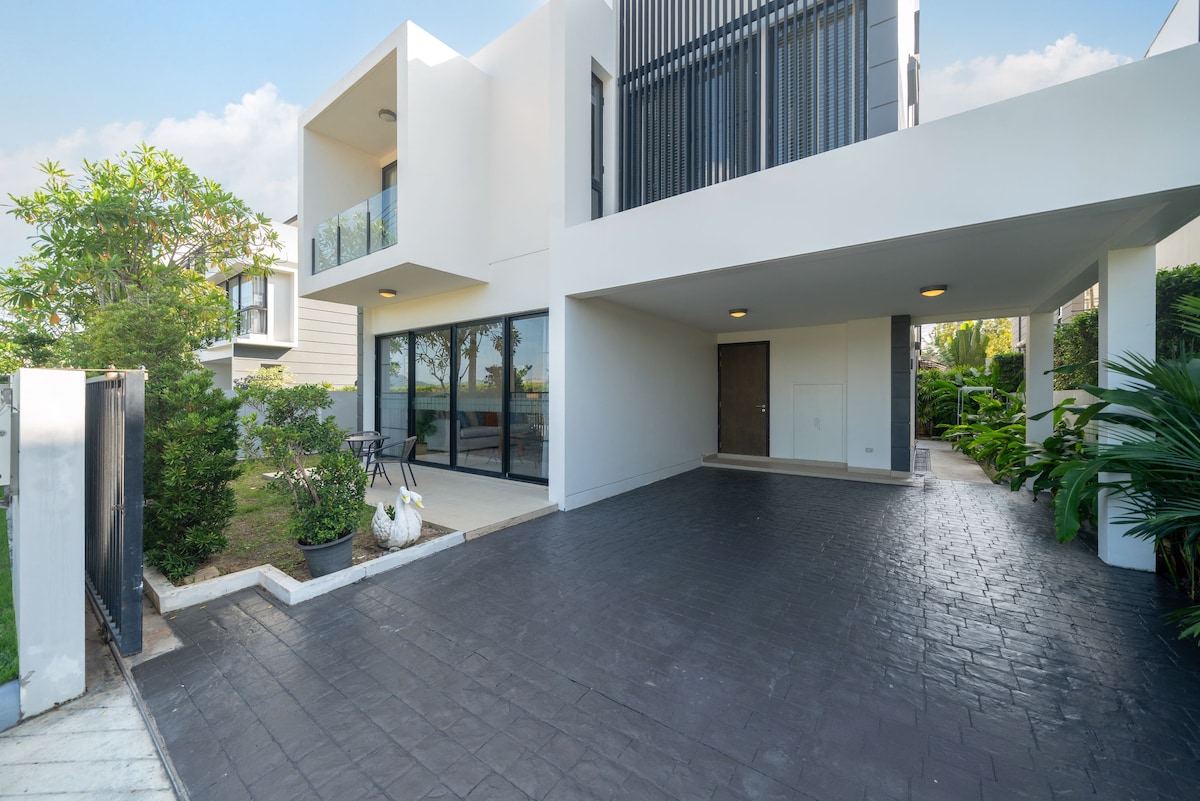 Porta tutta la famiglia in questa moderna e confortevole villa con 5 camere da letto, che può ospitare fino a 10 persone. Goditi una vita rilassata in un ambiente sicuro, recintato con sicurezza 24 ore su 24. Servizio navetta e barca gratuito, piscina pubblica, parchi giochi e ampio cortile condiviso, perfetto per famiglie e gruppi. La villa offre flessibilità con un piano superiore personalizzabile, ideale come spazio di lavoro privato o area relax, dotato di scrivania e ampio balcone con vista sulla natura oltre le mura della comunità.