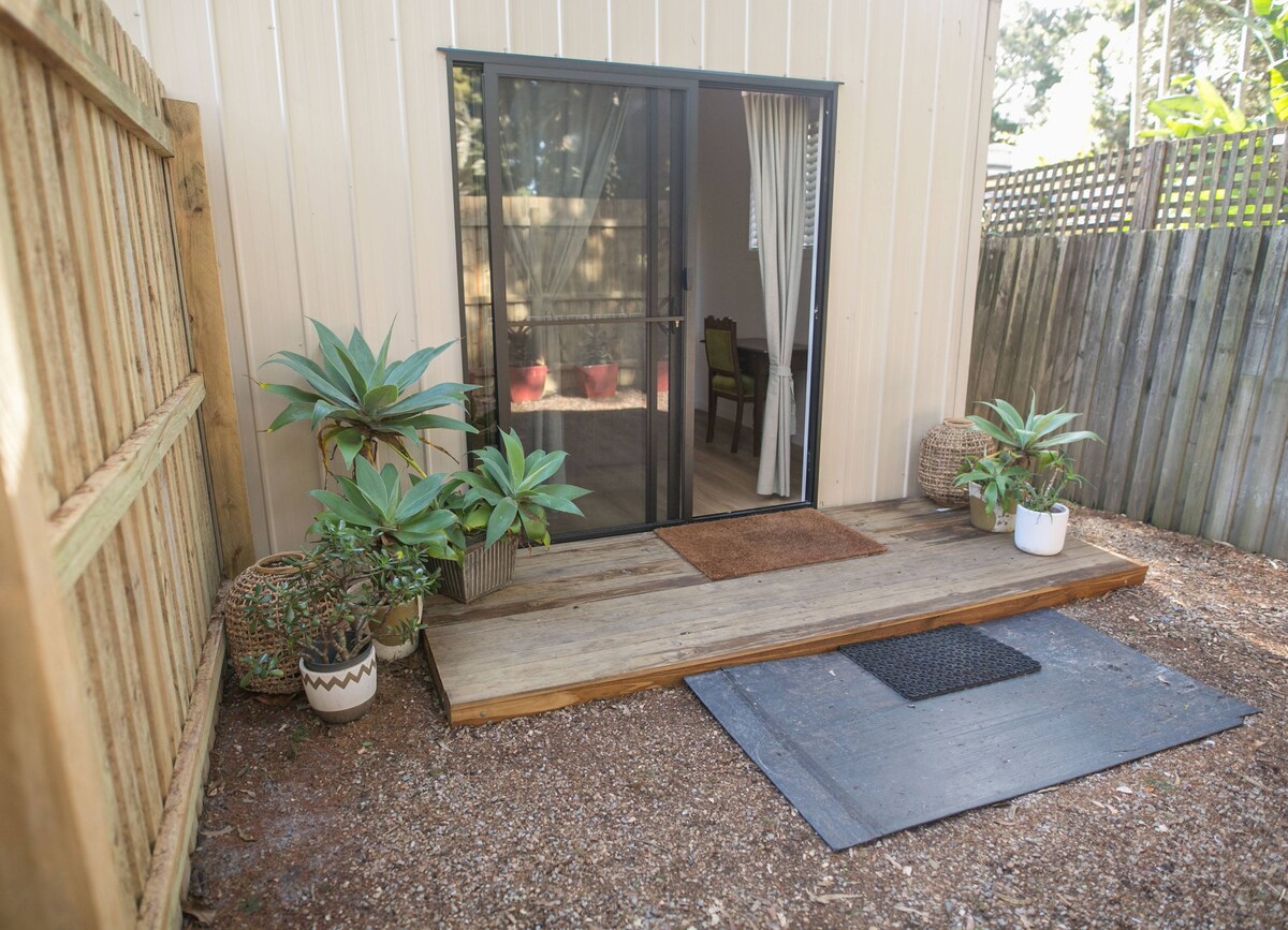 Pittoresco cottage privato e autonomo (monolocale) situato su 5 ettari. Solo un'altra casa nella proprietà (in cui viviamo io e mio marito) che è appena in vista. La struttura è un'oasi di pace e tranquillità, che offre un rifugio accogliente dopo una giornata in spiaggia e si trova a breve distanza in auto dal CBD. Gli uccelli cantano sempre e i wallaby spesso fanno visita all'alba e al tramonto. Non adatto a neonati e bambini piccoli. È vietato organizzare feste.