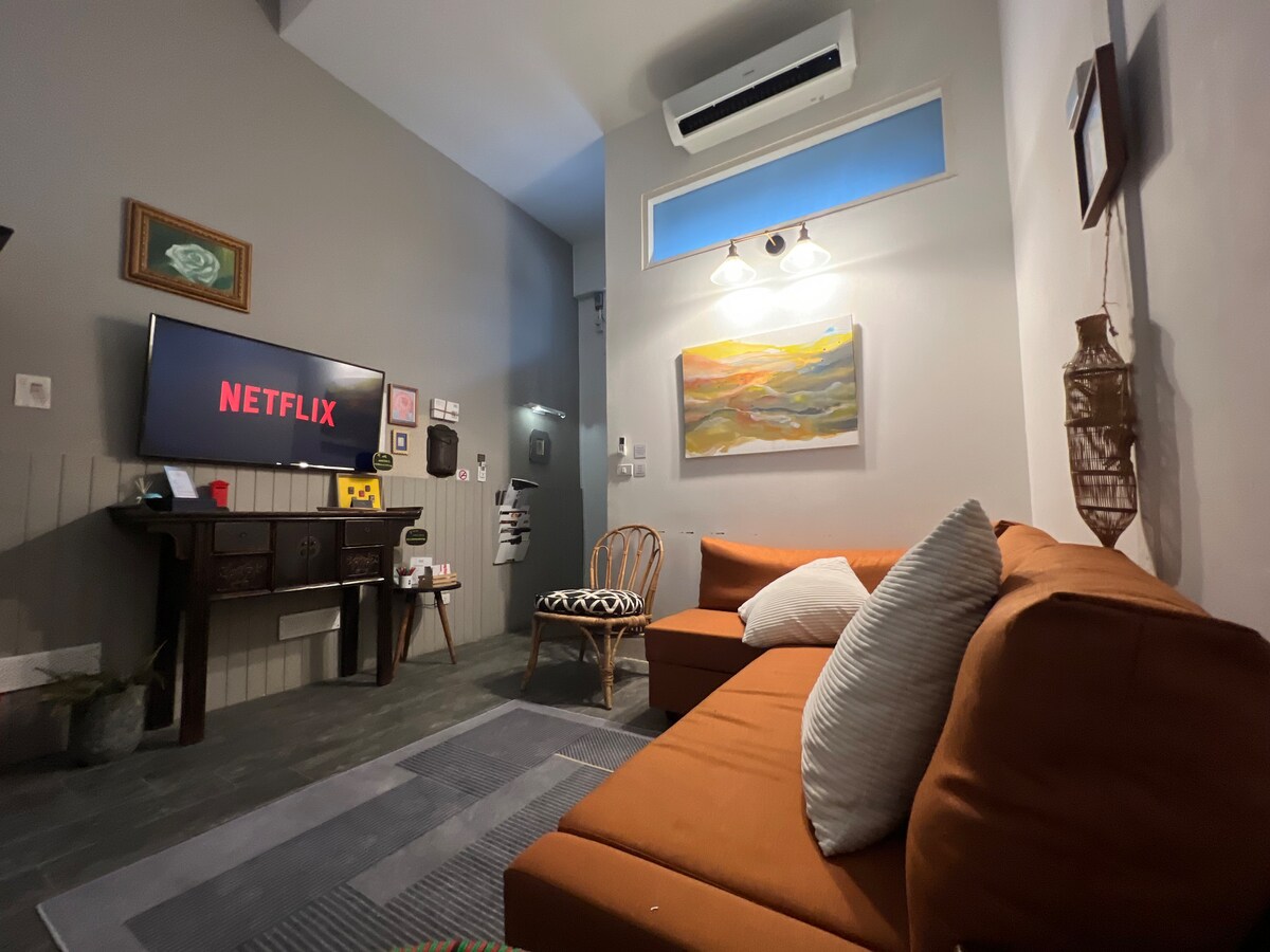 Entra nel nostro incantevole monolocale a tema retrò. Questo spazio accogliente dispone di un comodo letto matrimoniale, un elegante divano in pelle ed è decorato con una collezione unica di arte vintage. È il rifugio perfetto per chi viaggia da solo o in coppia, completo di servizi moderni come aria condizionata e frigorifero per un soggiorno confortevole.