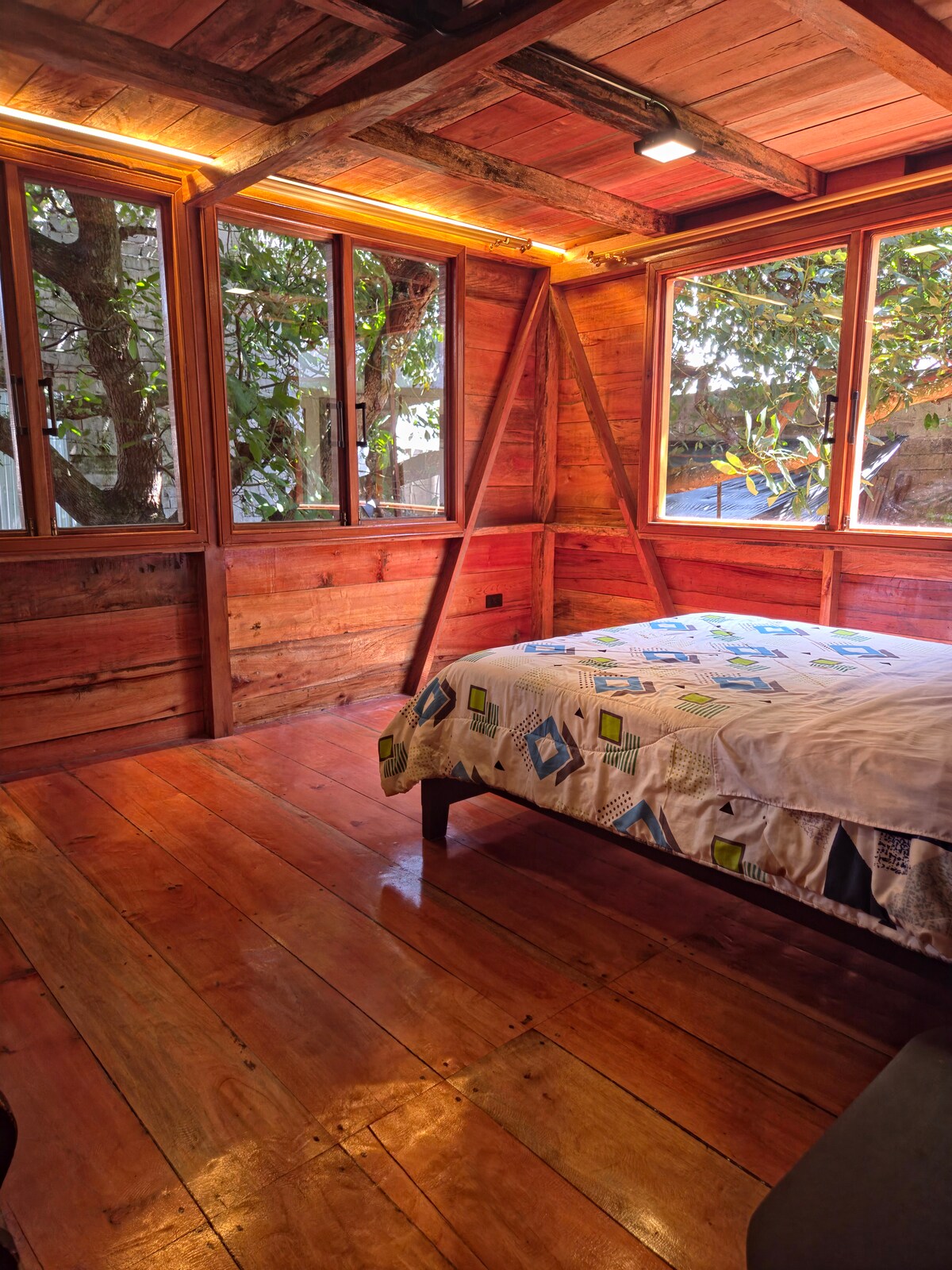 Cottage in legno nel cuore della città, vicino a bar, ristoranti e piscine. Goditi la luce naturale durante il giorno e quella artificiale calda di notte. Isolato dal rumore urbano, è un rifugio tranquillo e accogliente. Perfetto per rilassarsi senza perdere la comodità di essere in centro. La tua fuga perfetta in città!