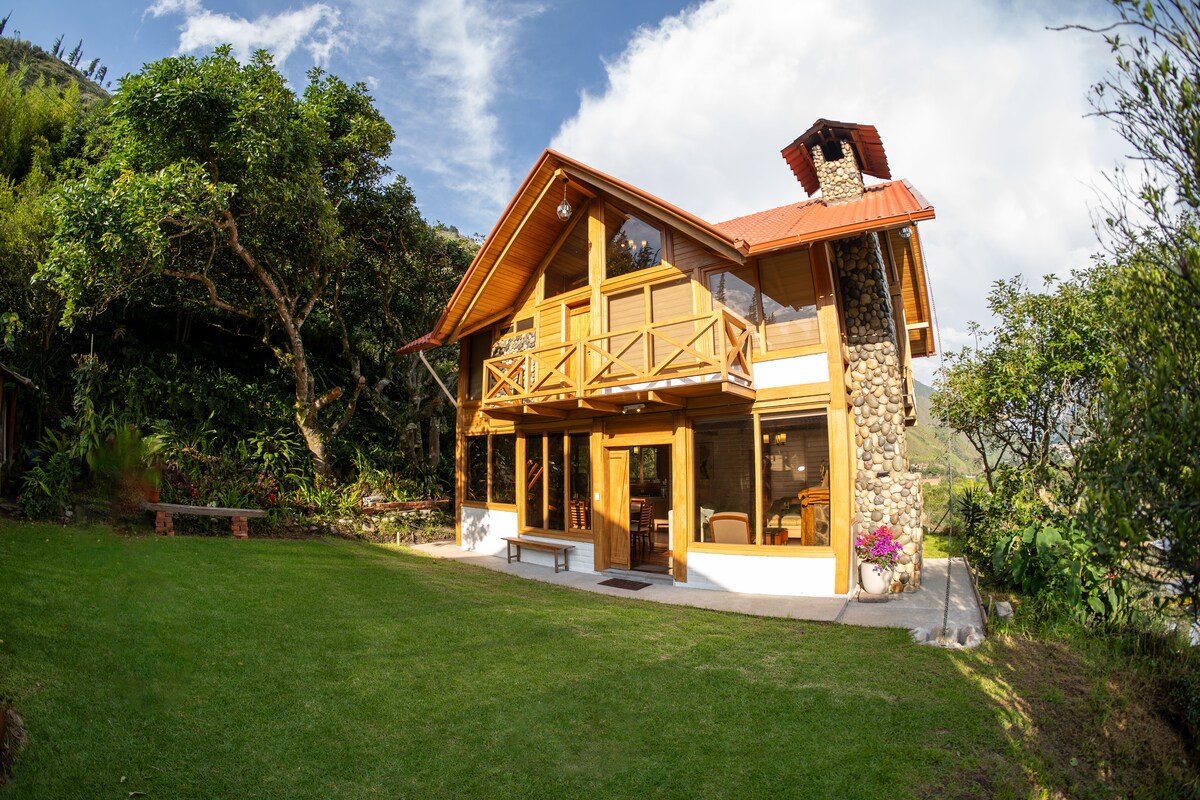 Chalet situato ai piedi del vulcano Tungurahua, a 4 km dal centro di Baños. Questo alloggio è circondato dagli splendidi paesaggi delle montagne andine e dal canyon del fiume Pastaza. Costruito con il 60% di materiali riciclati, combinati con elementi biologici ed energia rinnovabile, questo chalet offre un'esperienza innovativa, incentrata su nuovi modi di ospitare nelle Ande. La pratica architettonica implementata è stata riconosciuta in biennali internazionali.