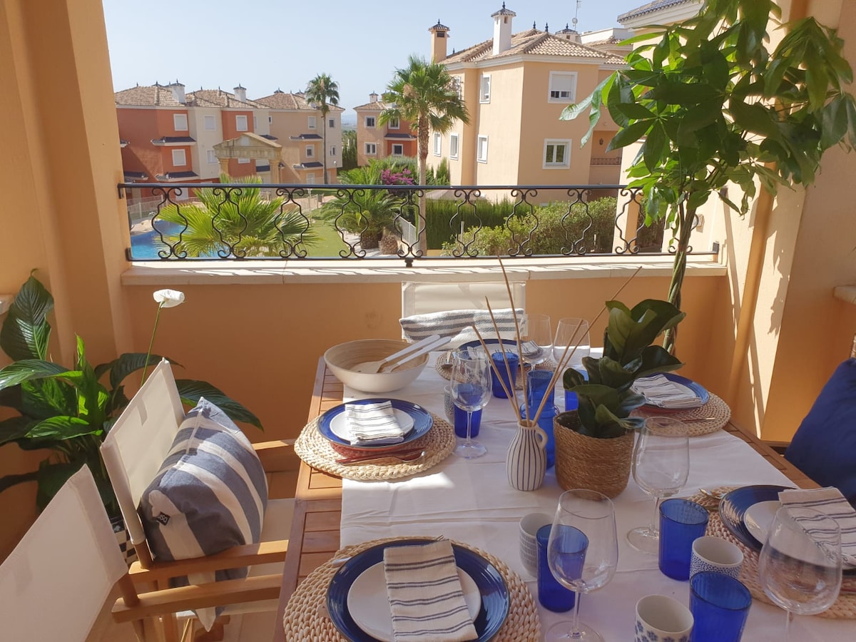 Goditi questo luminoso e accogliente attico-duplex di 145 m2 con una posizione unica nel complesso residenziale Alhambras I di Altaona Golf. Ideale per trascorrere il fine settimana o le vacanze. L'alloggio si trova al 1° e 2° piano di un edificio con ascensore, con una vista spettacolare sulla piscina, sul campo da golf e sulle montagne POSIZIONE STRATEGICA: -A 10 minuti dall'aeroporto della Regione di Murcia -A 15 minuti dal centro di Murcia -A 22 minuti da Cartagena - A 20 minuti dalle spiagge del Mar Menor
