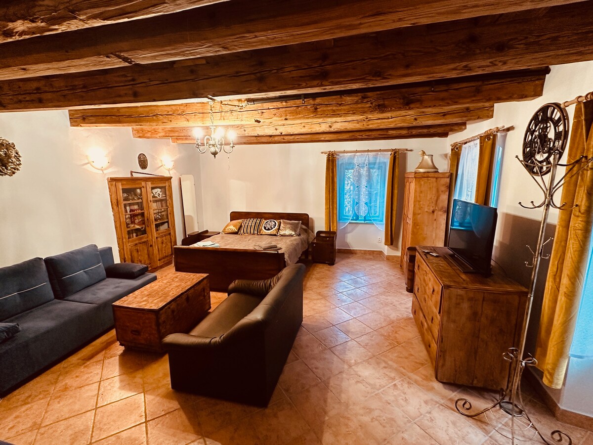 Storico loft situato nel cuore della piazza del municipio. Se ti piace essere al centro di tutto con ristoranti, bar, gallerie proprio sotto il vecchio castello, allora il loft con travi in legno potrebbe riportarti ai bei tempi di vita borghese nella città protetta dall'Unesco di Banska Stiavnica. Oh e anche i tuoi cuccioli di pelliccia sono i benvenuti!