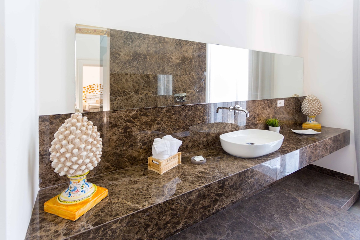 La Suite Althea è perfetta per chi vuole provare un’esperienza siciliana, non solo nell’ambiente esterno ma anche in questa grande e indipendente camera. Infatti, dal bagno al piccolo cucinino con lavello, microonde e piatti, e al tavolo da pranzo, tutto ricorda la sicilianità nei materiali usati per rifinirla e arredarla. Dotata di un patio con ingresso indipendente, il monovano ha tre grandi finestre che si affacciano sul giardino e sul panorama circostante. La piscina è disponibile in estate